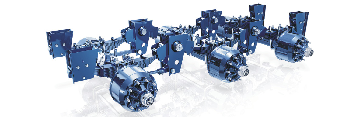 Equalising beams mounted in maintenancefree rubber-steel bushes (9 t to 14 t) or in high-quality, long-life bronze bushes (9 t to 20 t)