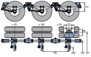For axle loads from 9 t to 12 t (M/ME series) and from 14 t to 20 t (HD/HDE series)